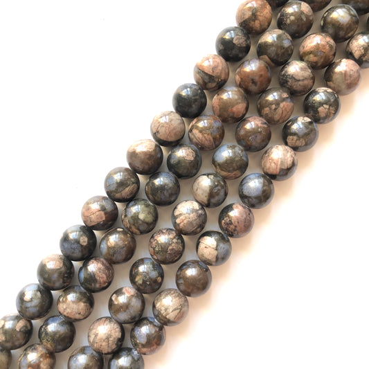 2 Strands/lot 10/12mm Red Web Rhodonite Stone Round Beads