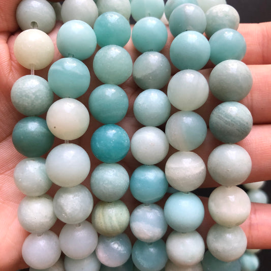 2 Strands/lot 10mm Blue Amazon Round Stone Beads