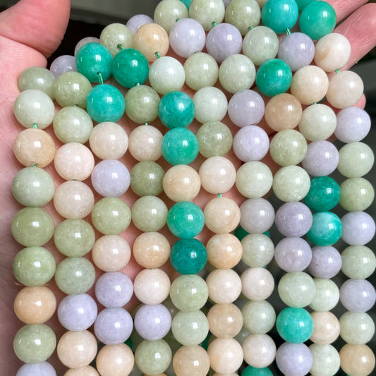 2 Strands/lot 10/12mm Multicolor Light Yellow Gray Green Turquoise Chalcedony Jade Round Stone Beads