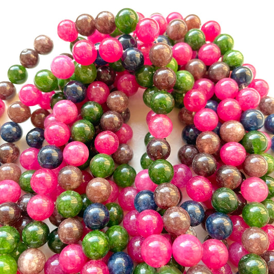 2 Strands/lot 10 Multicolor Hot Pink Brown Blue Green Chalcedony Jade Round Stone Beads