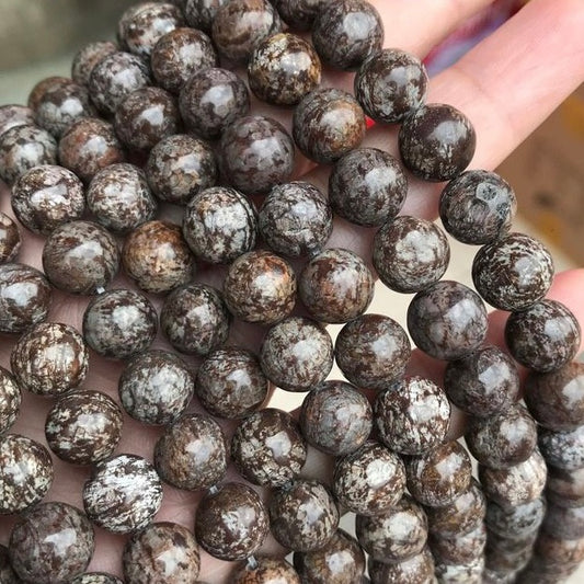 2 Strands/lot 10/12mm Coffee Grey Snowflake Obsidian Stone Round Beads