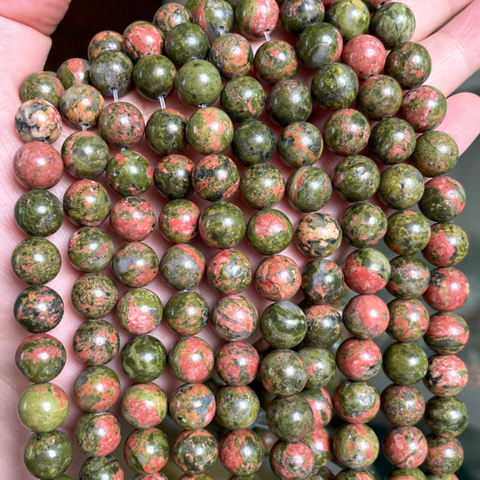 2 Strands/lot 10mm Flower Green Unakite Stone Round Beads