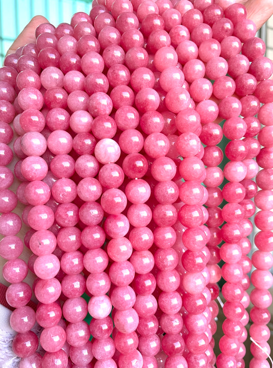 2 Strands/lot 10/12mm Pink Chalcedony Jade Round Stone Beads