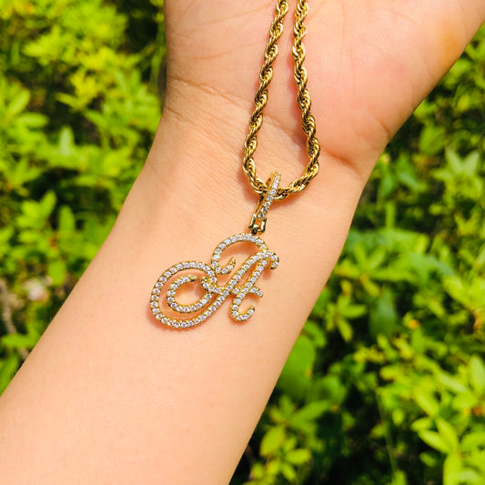 10pcs/lot CZ Paved Vintage Initial Alphabet Necklace -Gold