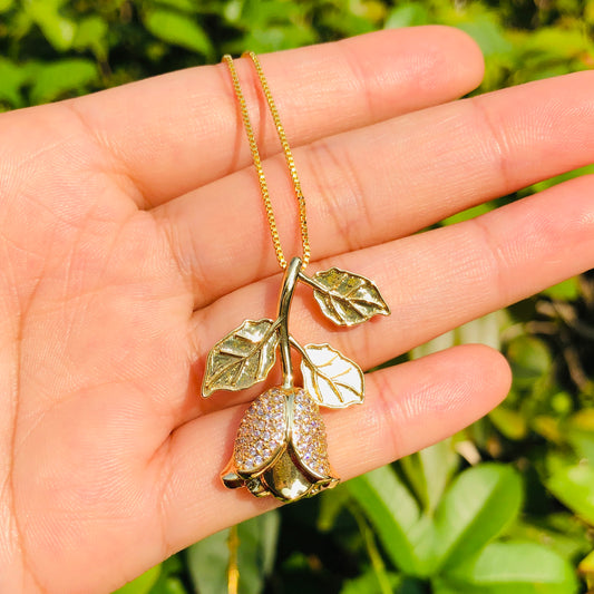 5pcs/lot 32*23mm Clear CZ Paved Rose Necklaces