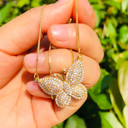 5pcs/lot 29.5*20mm CZ Paved Butterfly Necklaces