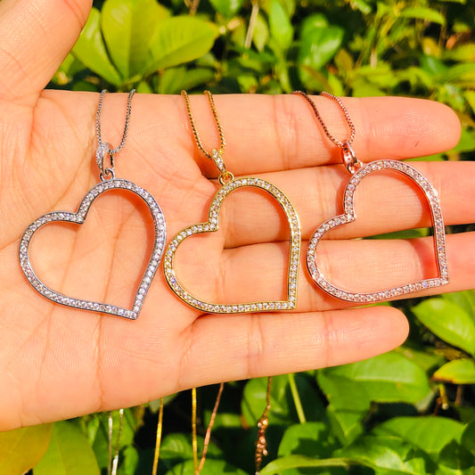 5pcs/lot CZ Paved Hollow Heart Necklaces