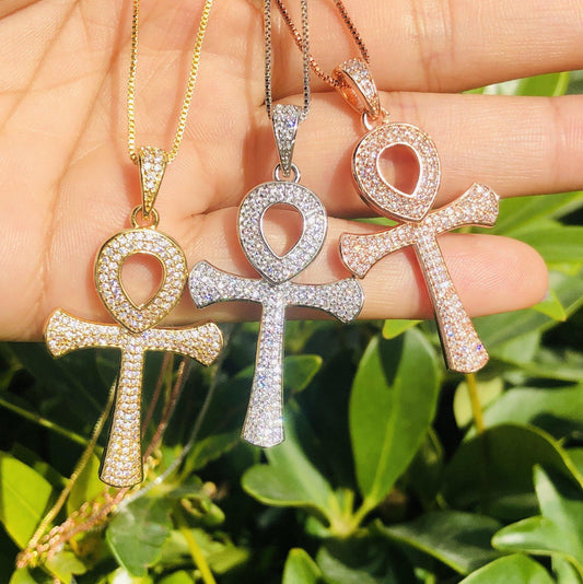 5pcs/lot 45*23.3mm CZ Paved Ankh Necklaces