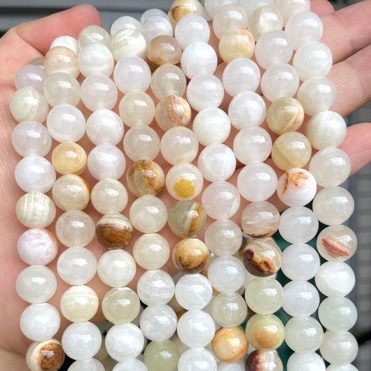 2 Strands/lot 8mm, 10mm Natural White Yellow Persian Jade Round Stone Beads