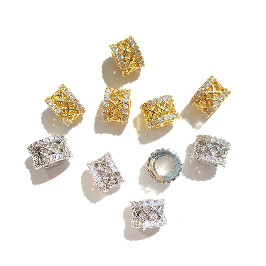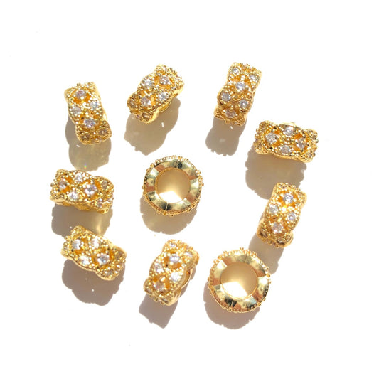 10-20-50pcs/lot 10mm Square CZ Paved Big Hole Rondelle Wheel Spacers