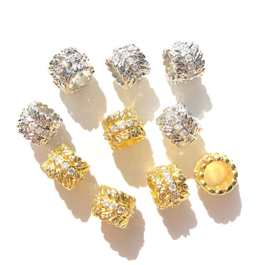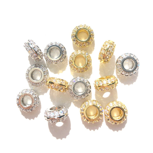 10-20-50pcs/lot 10mm CZ Paved Big Hole Rondelle Wheel Spacers