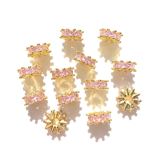 20-50pcs/lot 8*3.5mm Pink Square CZ Paved Rondelle Wheel Spacers