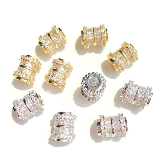 10-20-50pcs/lot 8*8mm CZ Paved Big Hole Tube Rondelle Wheel Spacers