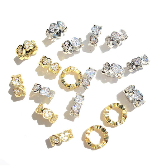 20-50pcs/lot CZ Paved Big Hole Heart Rondelle Wheel Spacers
