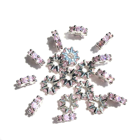 20-50pcs/lot 6.6mm Pink CZ Paved Rondelle Wheel Spacers
