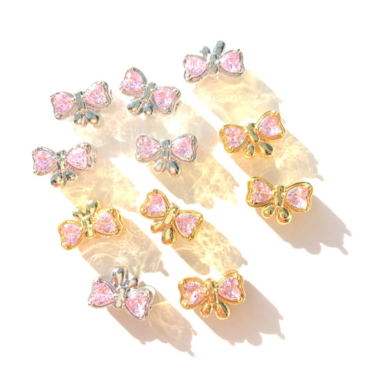 10-20-50pcs/lot Pink Heart CZ Paved Bow Tie Spacers