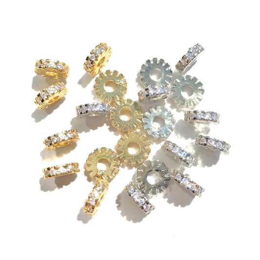 20-50pcs/lot 7.5mm CZ Paved Hollow Rondelle Wheel Spacers
