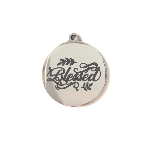 10pcs/lot 20mm Blessed Laser Engraved Stainless Steel Charm