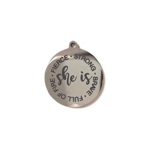 10pcs/lot 20mm She Is Laser Engraved Stainless Steel Charm