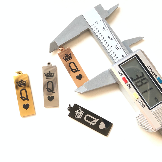 10pcs/lot 38*12mm QUEEN Laser Engraved Stainless Steel Charm