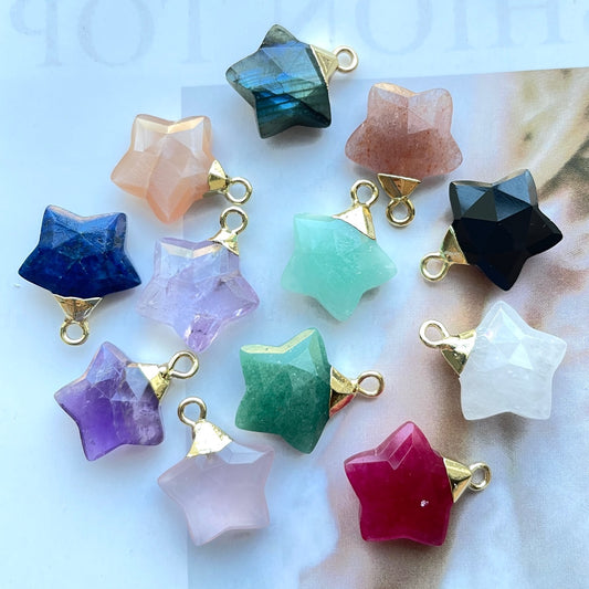 5pcs/Lot Gold Plated Natural Amethyst Labradorite Black Onyx Red Agate Faceted Star Charms