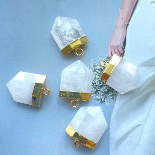 5pcs/Lot Gold Plated Clear Quartz Shield Shape Pendants