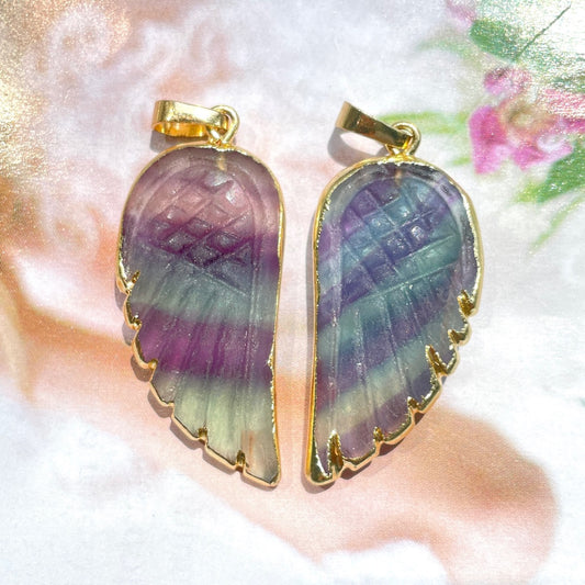 4pcs/Lot Gold Plated Bezel Rose Quartz Labradorite Fluorite Moon Stone Wing Pendants