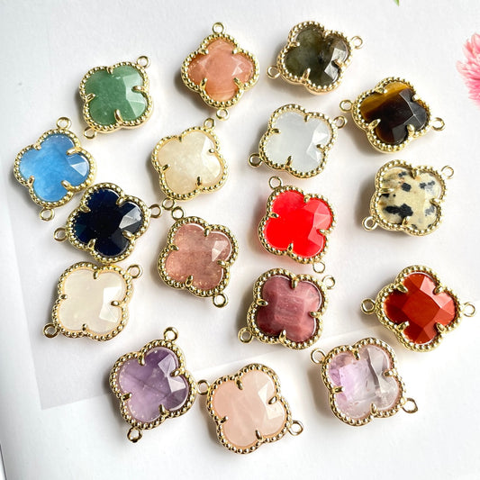 5pcs/Lot Gold Plated Bezel Labradorite Amethyst Rose Quartz White Quartz Tiger Eye Clover Flower Connectors