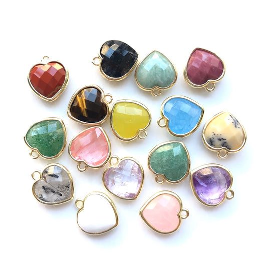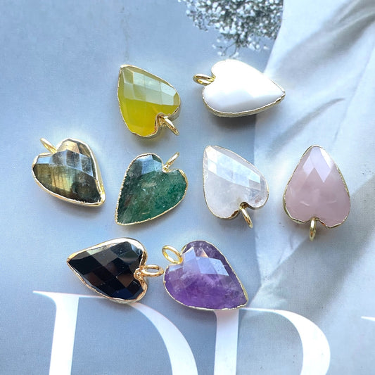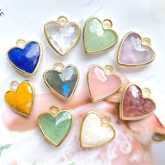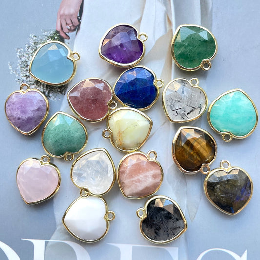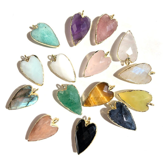 5pcs/Lot Gold Plated Bezel Natural Labradorite Amethyst Tiger Eye Rose Quartz Faceted Heart Pendants