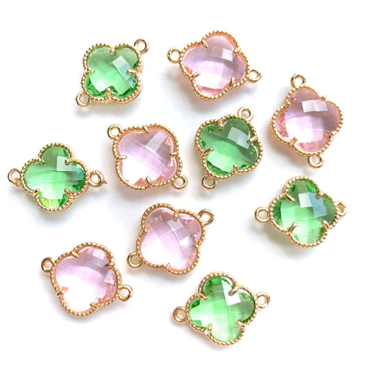 10pcs/Lot Gold Plated Glass Crystal Clover Flower Connectors