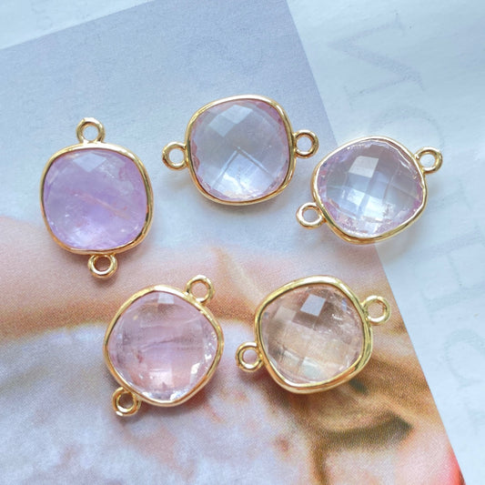 5pcs/Lot Gold Plated Bezel Labradorite Amethyst Rose Quartz White Quartz Tiger Eye Black Onyx Square Connectors