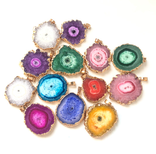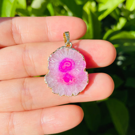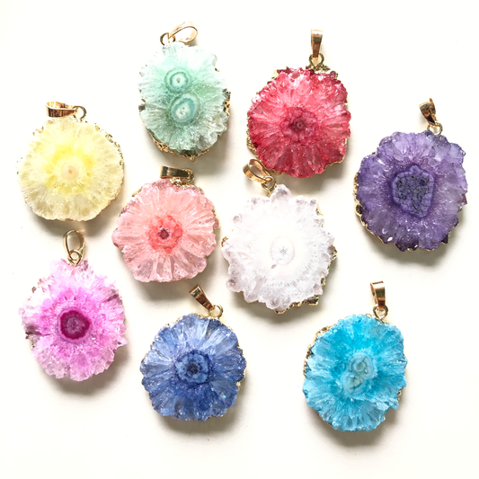 1PC 25-40mm Gold Plated Natural Sunflower Agate Charms-Premium Quality