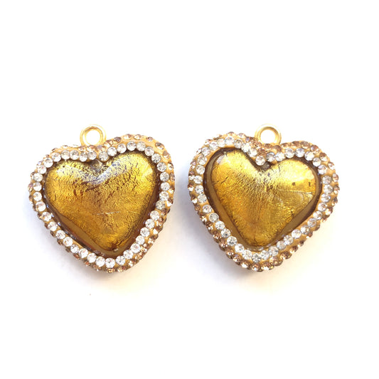 5pcs/lot Rhinestone Pave Colored Glaze Golden Heart Pendant