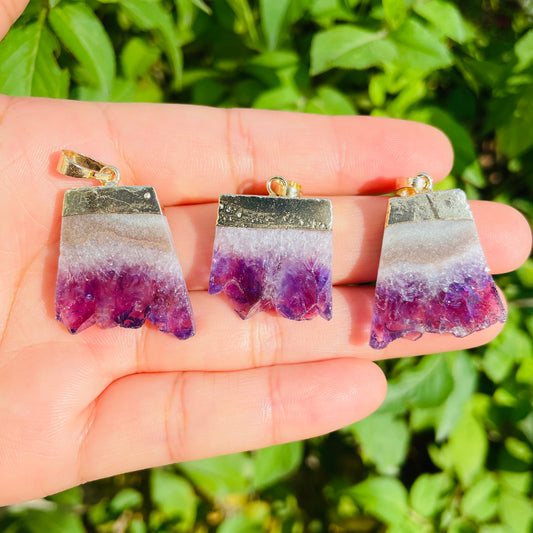 Natural Quartz Amethyst Pendants Gold Plated Turquoise Connectors-Premium Quality