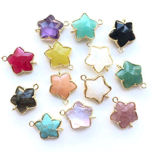 5pcs/Lot Gold Plated Bezel Natural Amethyst Labradorite Black Onyx Red Agate Faceted Star Connectors