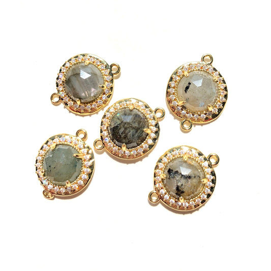 5-10pcs/Lot Small Size CZ Pave Natural Amethyst Labradorite Rose Quartz Faceted Round Connectors