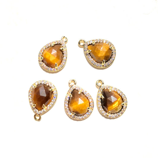 5-10pcs/Lot Small Size Micro Pave Natural Amethyst Rose Quartz Tiger Eye Faceted Water Drop Charm