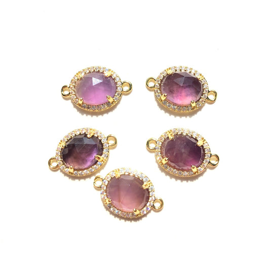5-10pcs/Lot Small Size CZ Pave Natural Amethyst Sun Stone Red Agate Faceted Oval Connectors