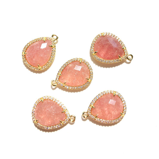 5-10pcs/Lot Micro Pave Natural Amethyst Rose Quartz Strawberry Quartz Faceted Water Drop Charm