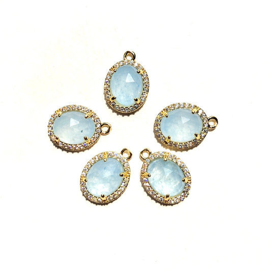 5-10pcs/Lot Small Size CZ Pave Natural Amethyst Rose Quartz Red Agate Faceted Oval Charm