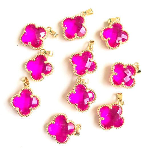10pcs/Lot Gold Plated Hot Pink Fuchsia Glass Clover Connectors & Pendants