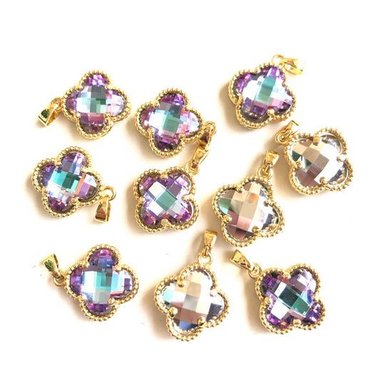 10pcs/Lot Gold Plated Purple Silver Glass Clover Connectors & Pendants