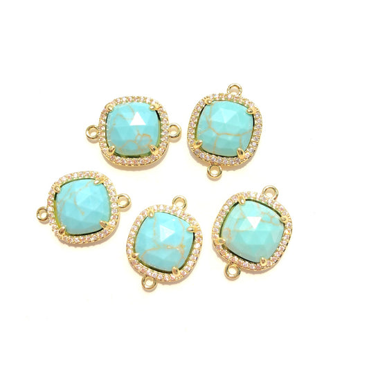 5-10pcs/Lot CZ Pave Natural Amethyst Labradorite Rose Quartz Faceted Square Connectors