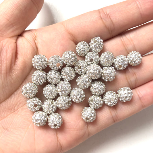 20-50pcs/lot 8mm Silver CZ Paved Alloy Ball Spacers
