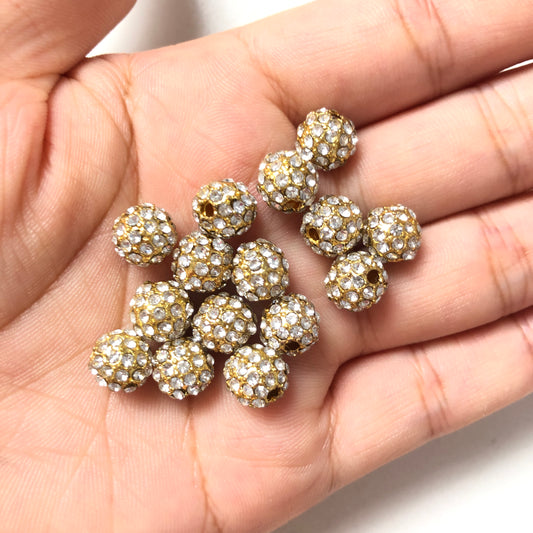 20-50pcs/lot 8mm Gold CZ Paved Alloy Ball Spacers