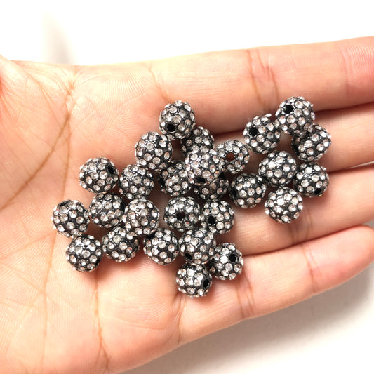 20-50pcs/lot 8mm Gunmetal CZ Paved Alloy Ball Spacers