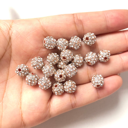 20-50pcs/lot 8mm Rose Gold CZ Paved Alloy Ball Spacers