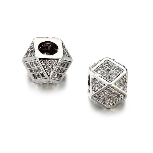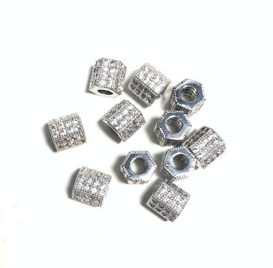 50pcs/lot 8*7mm Clear CZ Paved Hexagon Spacers