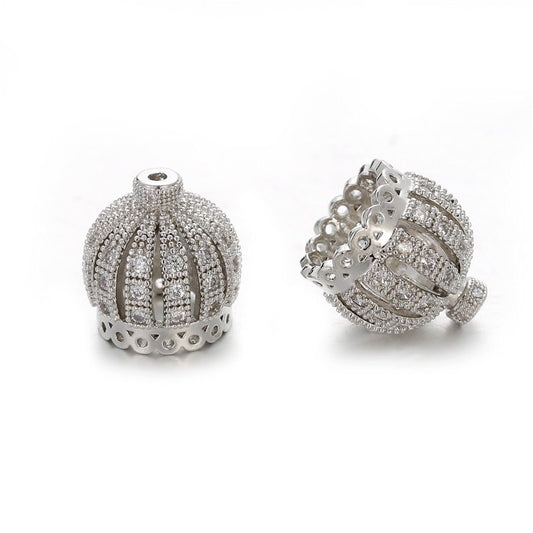 50pcs/lot Clear CZ Paved Hollow Crown Spacers