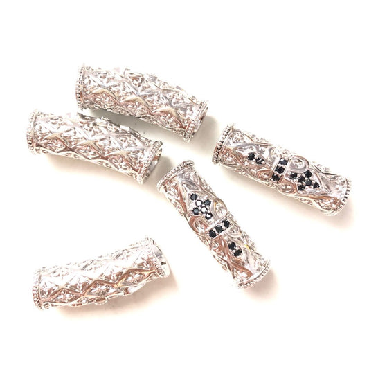 50pcs/lot Black CZ Hollow Flower Tube Spacers